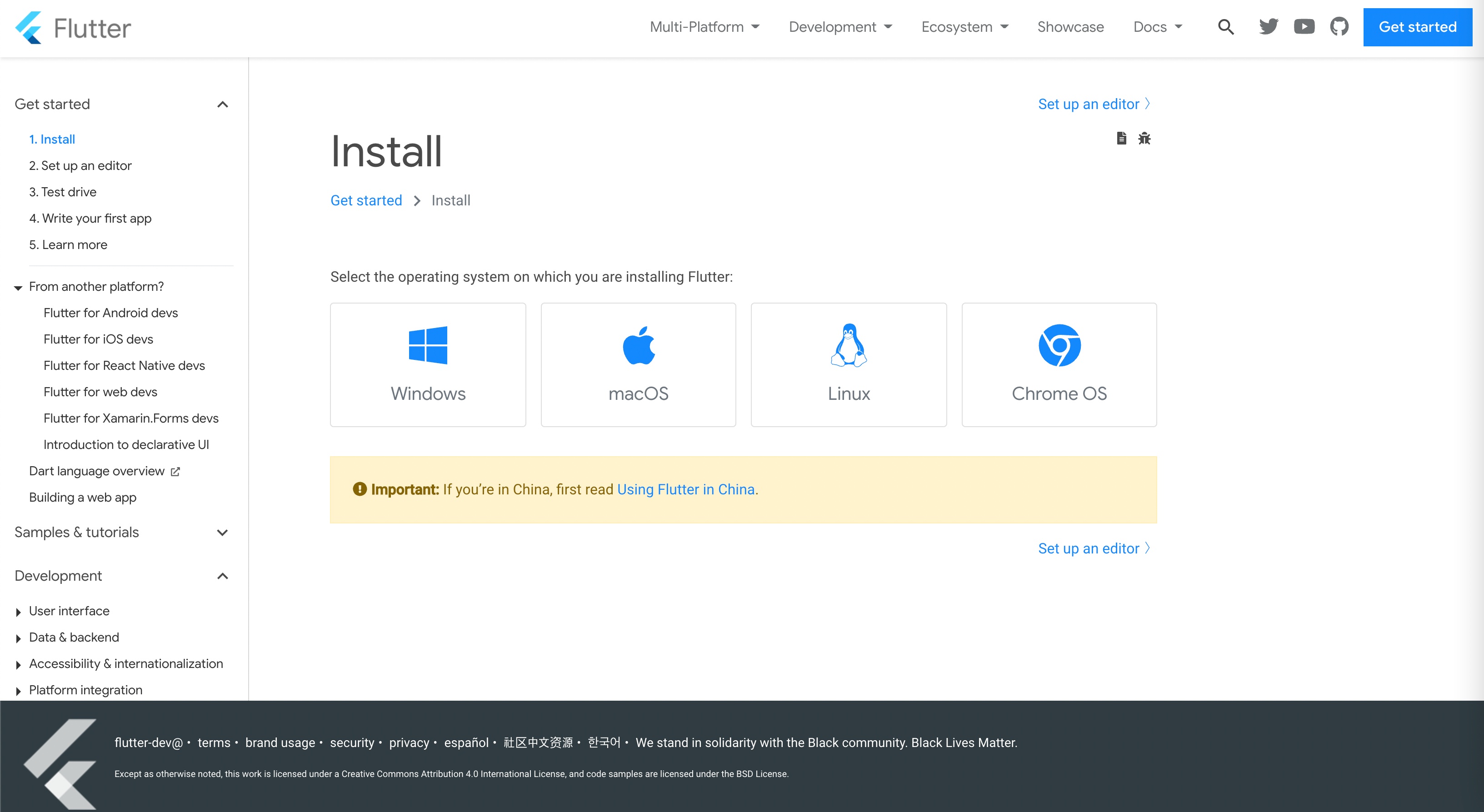 Install Flutter and get started. Downloads available for Windows, macOS, Linux, and Chrome OS operating systems.
