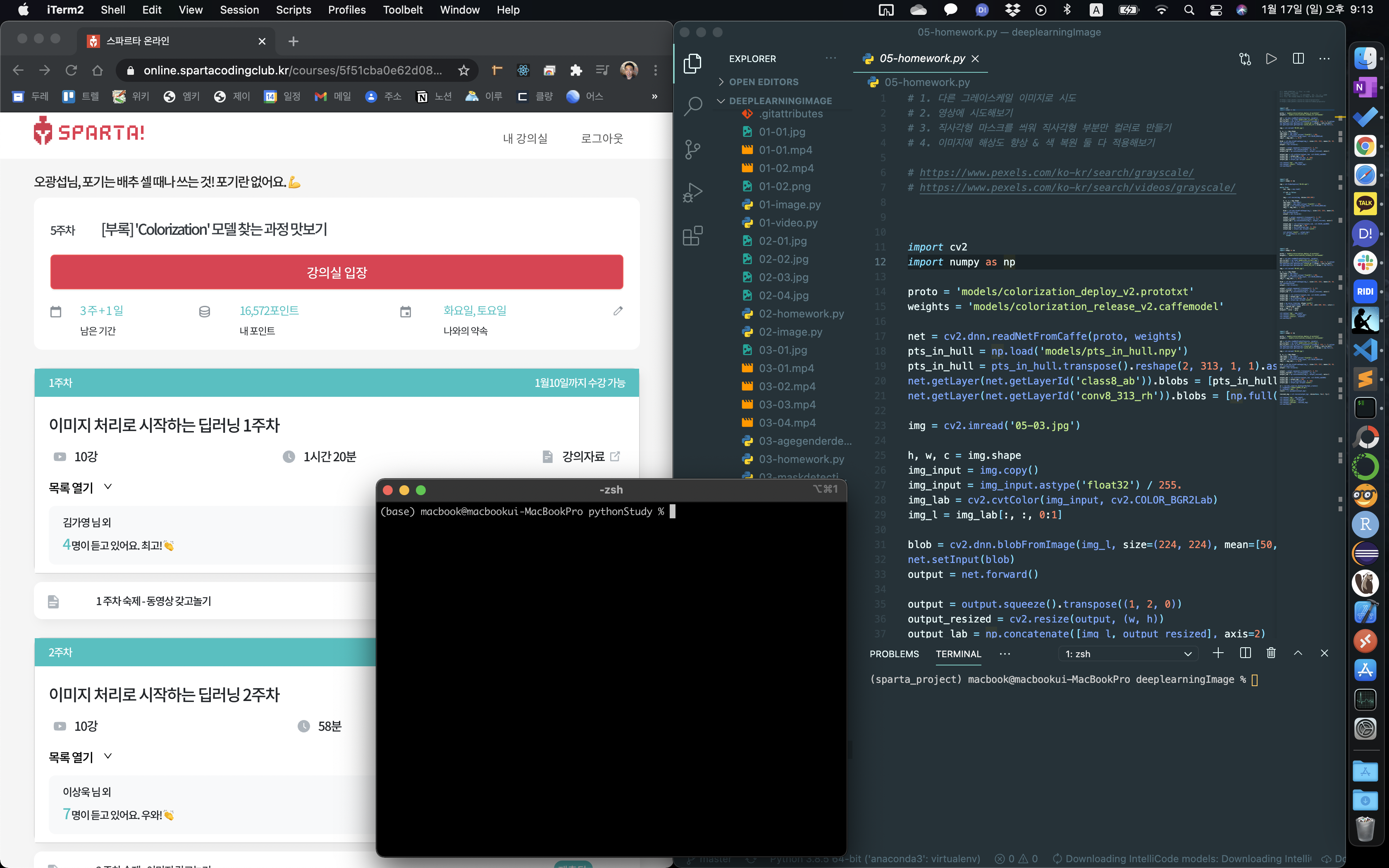 숙제를 내지 않으면, 다음주 강의로 넘어갈 수가 없어서 일주일 조금 넘게 걸린 것 같습니다