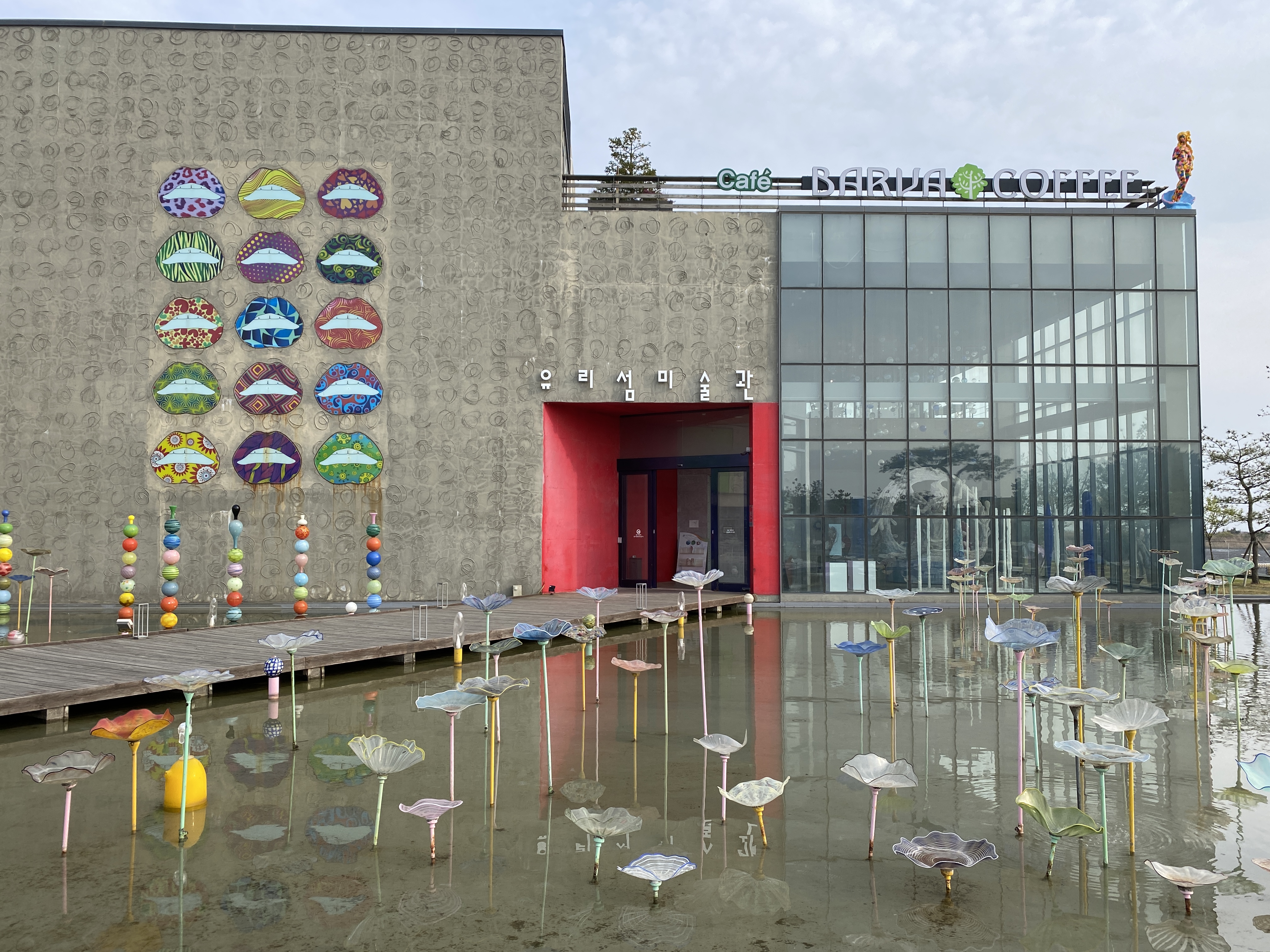 유리공예 시연 공연도 보고 체험도 가능한 유리섬박물관, 박물관 앞 공원에서 작품들과 사진찍기 놀거리도 많습니다.