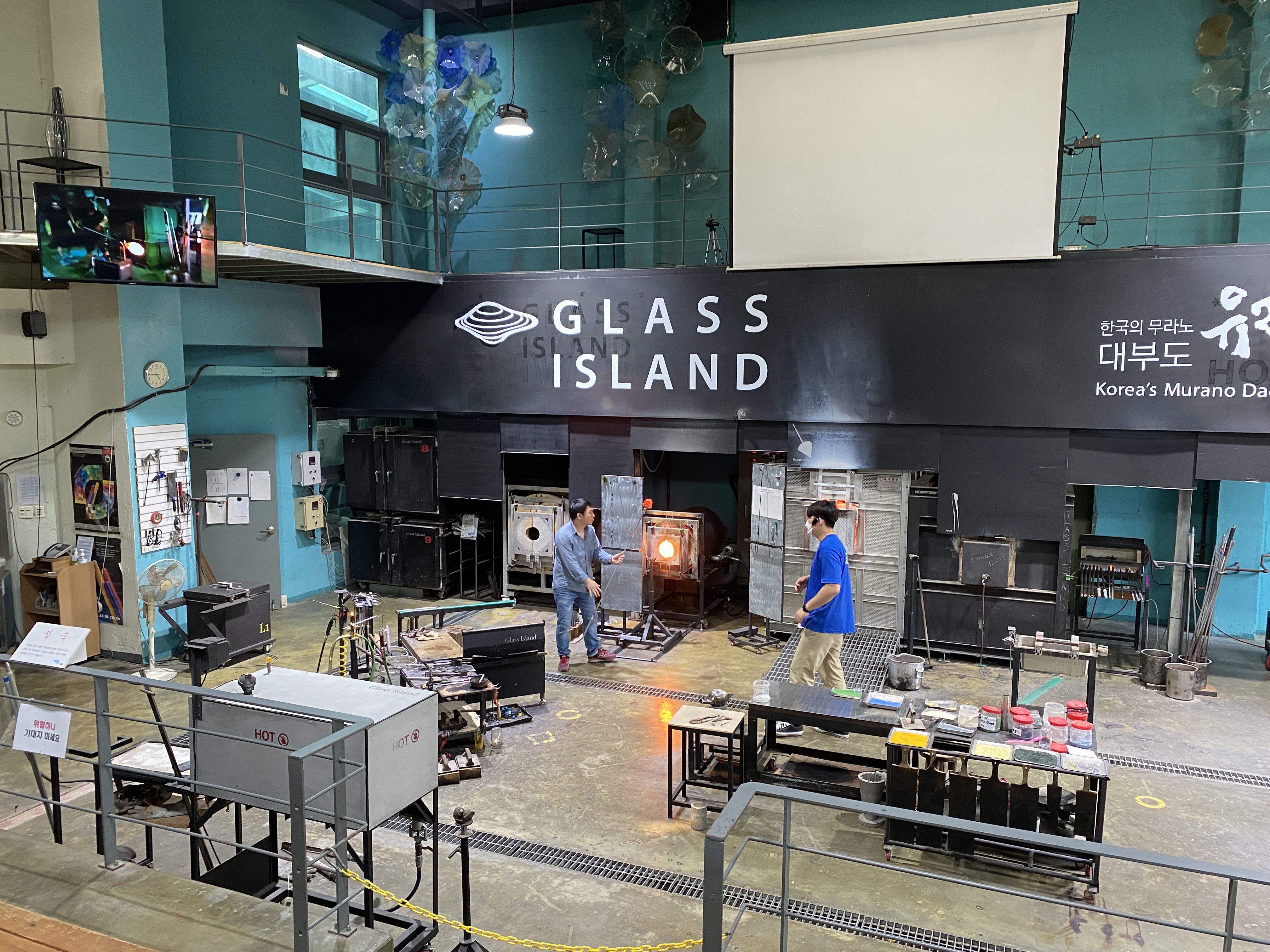 1200도 이상의 고온의 유리를 블로우 파이프(Blow pipe)를 이용하여 다양한 유리 조형물을 제작하는 과정 전체를 공연 형식으로 관람하실 수 있습니다. 유리섬에서는 최대 200명이 동시에 관람할 수 있는 국내 최초의 극장식 유리공예 시연장을 갖추고 유리섬에 입장하신 모든 방문객에게 하루 3회 유리공예시연을 제공하고 있다고 합니다.