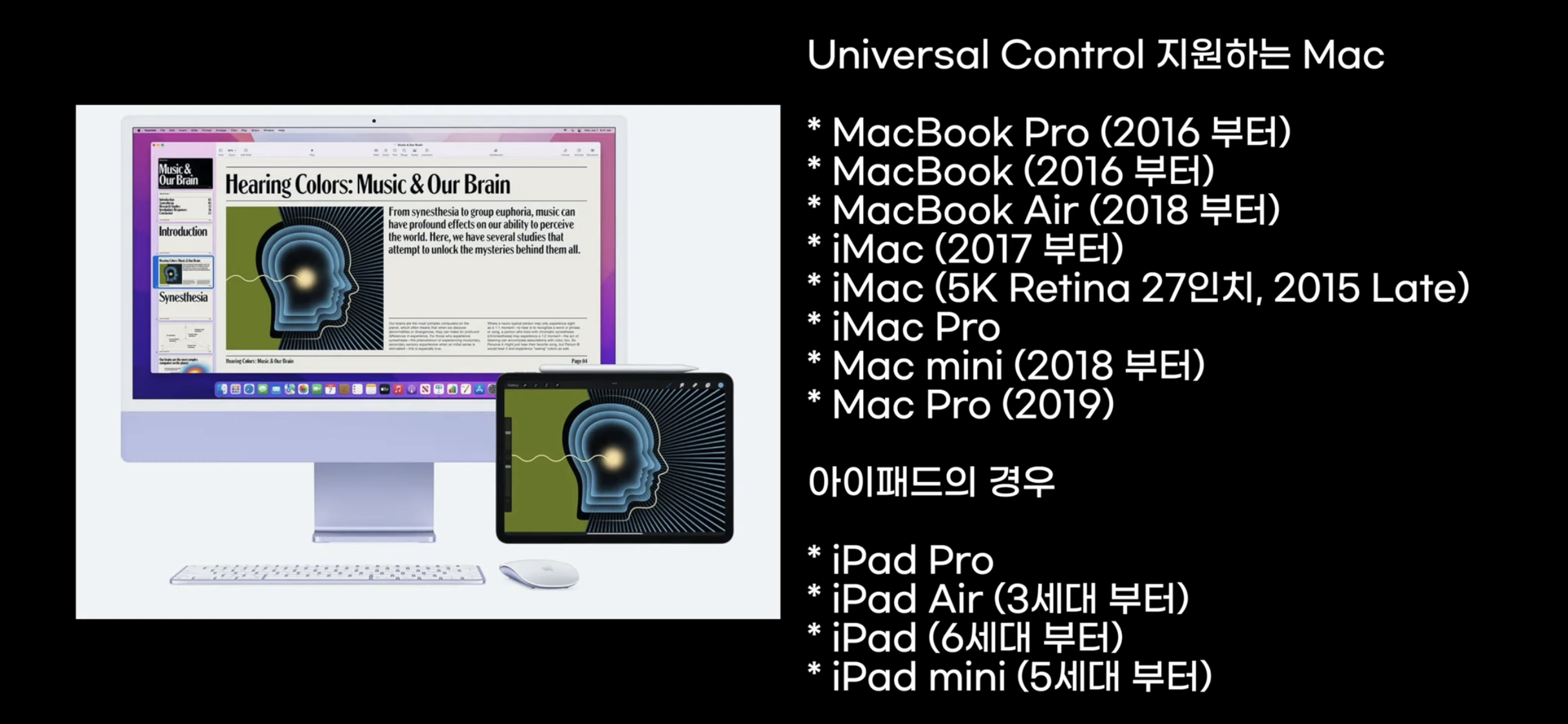 작년 6월 WWDC에서 가장 눈길을 끌었던 기능이 유니버설 컨트롤 입니다.