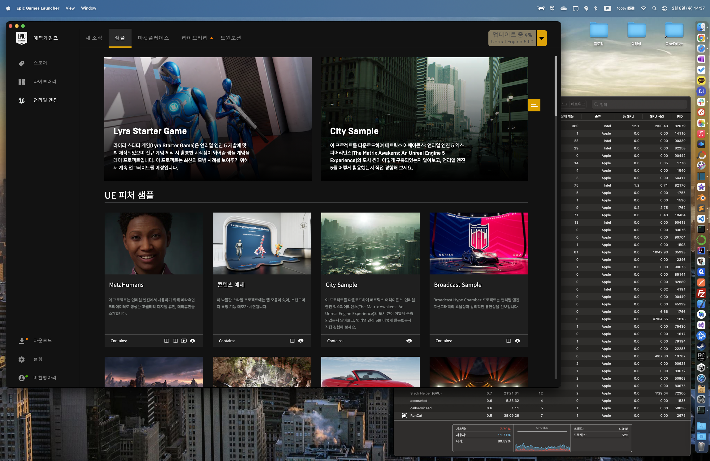 언리얼 5.2 새 버전에서 애플 실리콘 정식 지원 한다고 해서 혹시나 업데이트 해봤지만