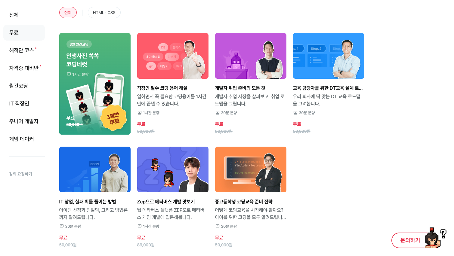 무료 강의들이 꽤 준비되어 있습니다. - 일단 한번 들어 보셔.