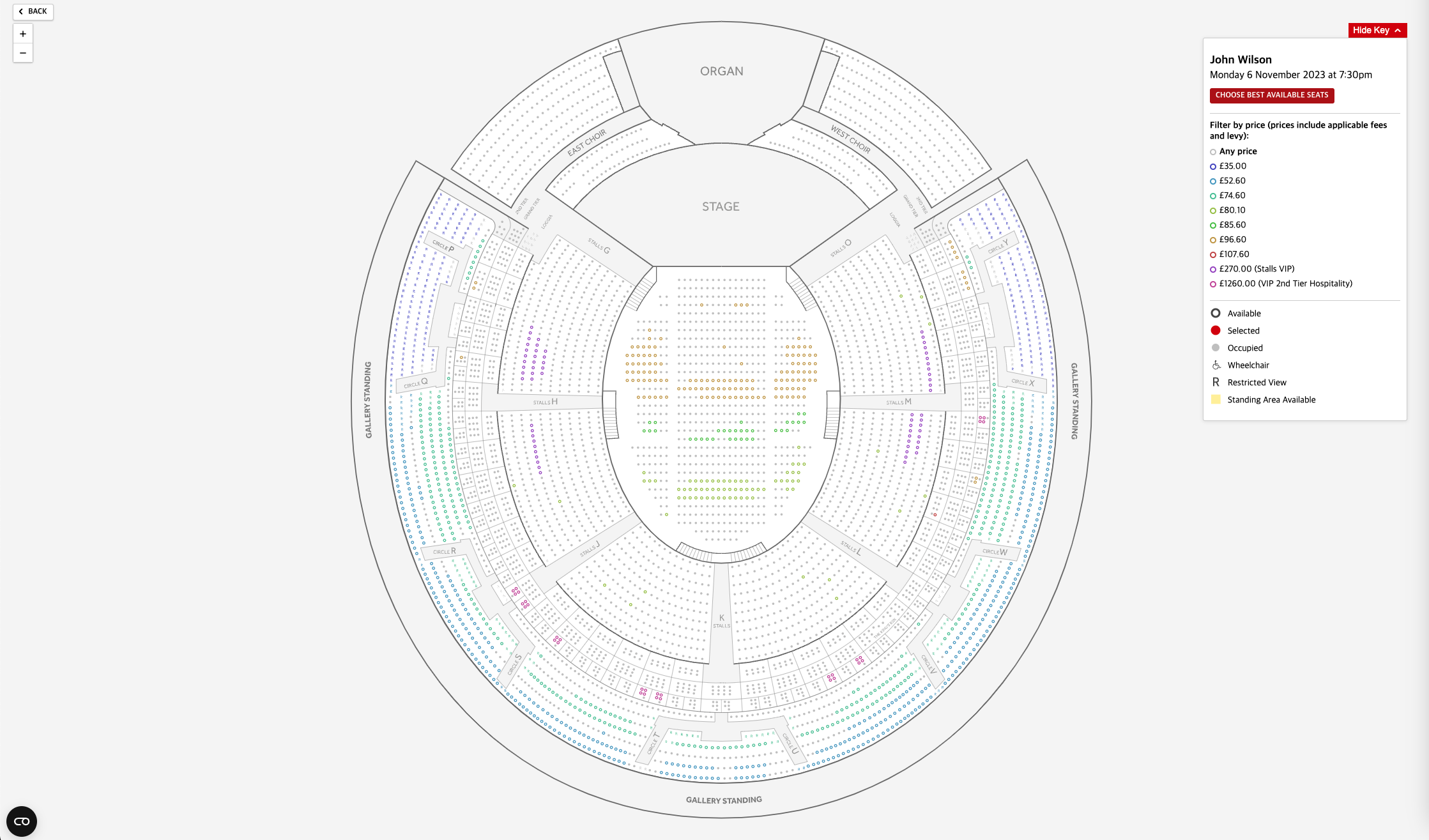the Royal Albert Hall 홈페이지 가서 공연예정인 뮤지컬 하나 골라서 가격을 봤습니다
