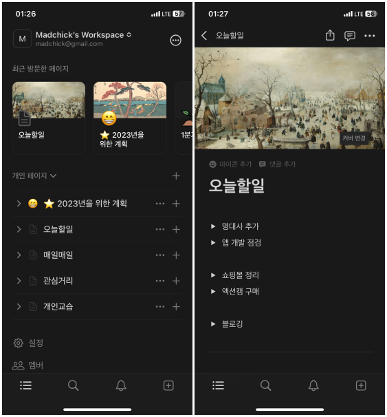 노션을 사용하면 정말 편리한 경우가 있어서 요즘엔 둘 다 사용중 입니다