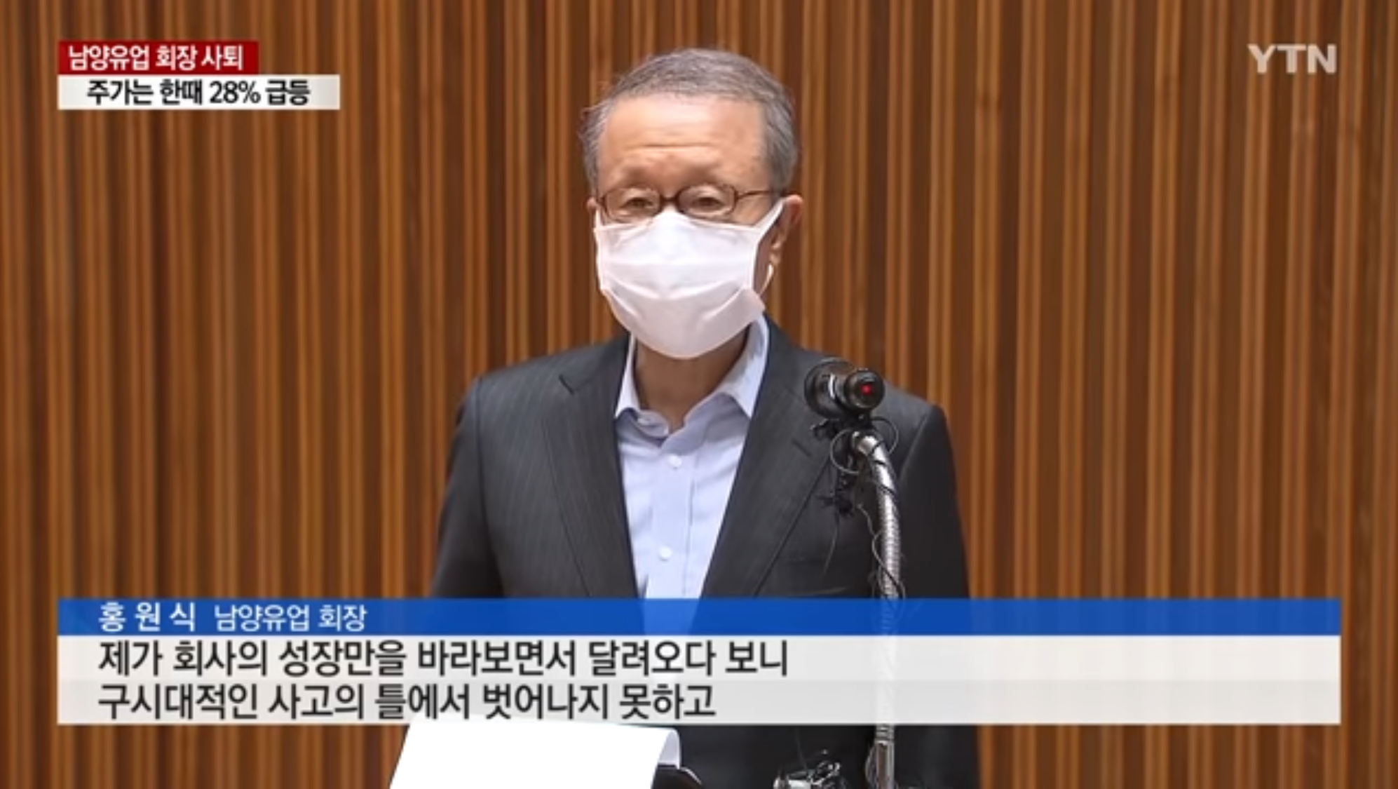 하지만, 남양유업은 뒷짐지고 구경만, 본인 주가 걱정만 하지 책임이란건 잘 모르는 회장