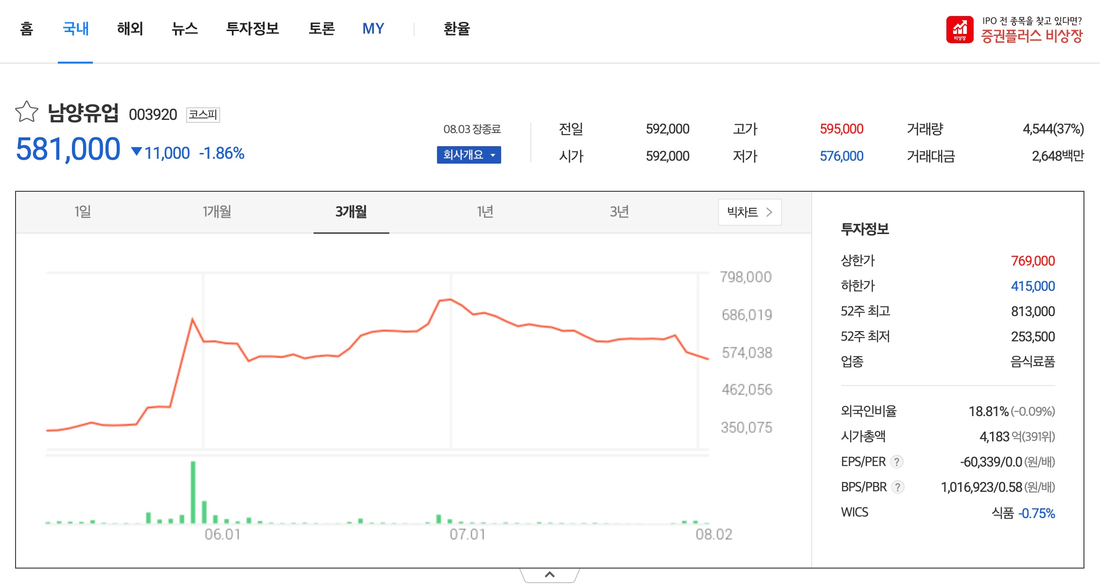 갑자기 남양유업 주가 폭등 - 투기 자본들이 이건 기회다 싶어 움직임