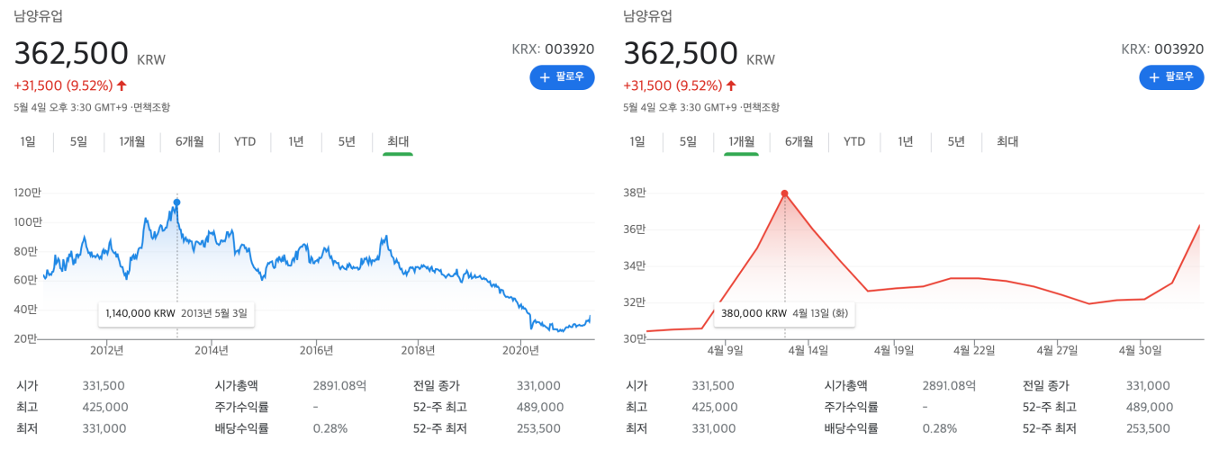 실적이 좋지 못한 상황 속에서도 최근 1년 사이 남양유업의 주가는 수상한 상승 곡선