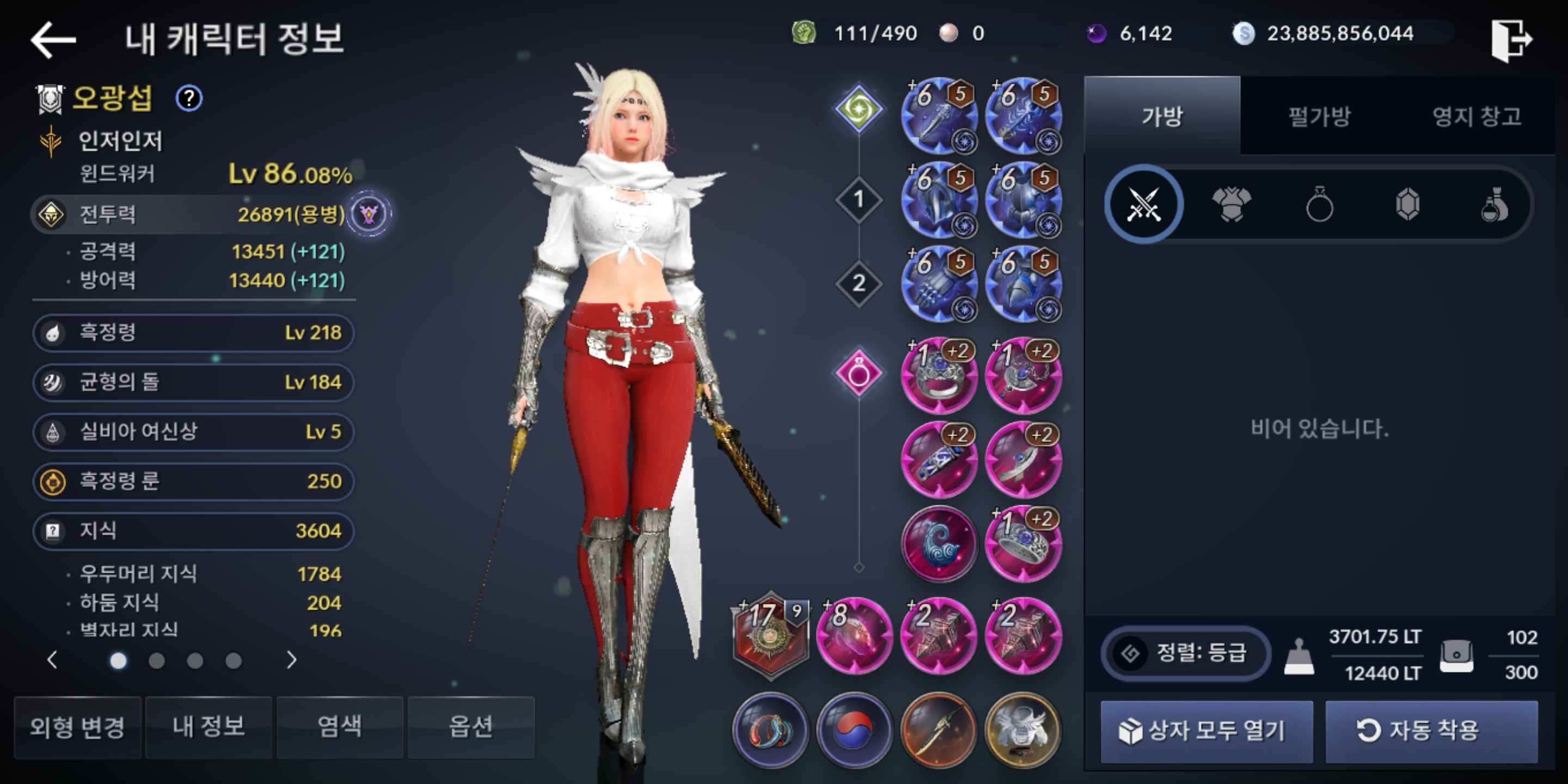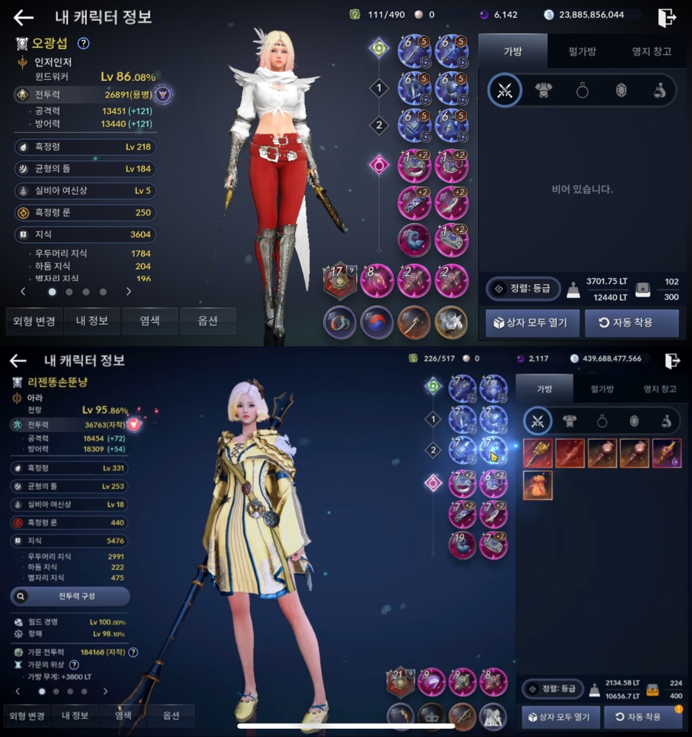 사실 그래서 대충 자동사냥이나 돌리고 있었습니다. 하지만, 이젠 아무리 자동사냥을 돌려도 전투력이 올라가질 않기에 그럼 새로 업데이트된 내용들 적용해 보면 전투력을 어디까지 올릴 수 있는지 함 보자는 마음에 끌어 올릴 수 있는데까지 끌어올려 봤습니다.