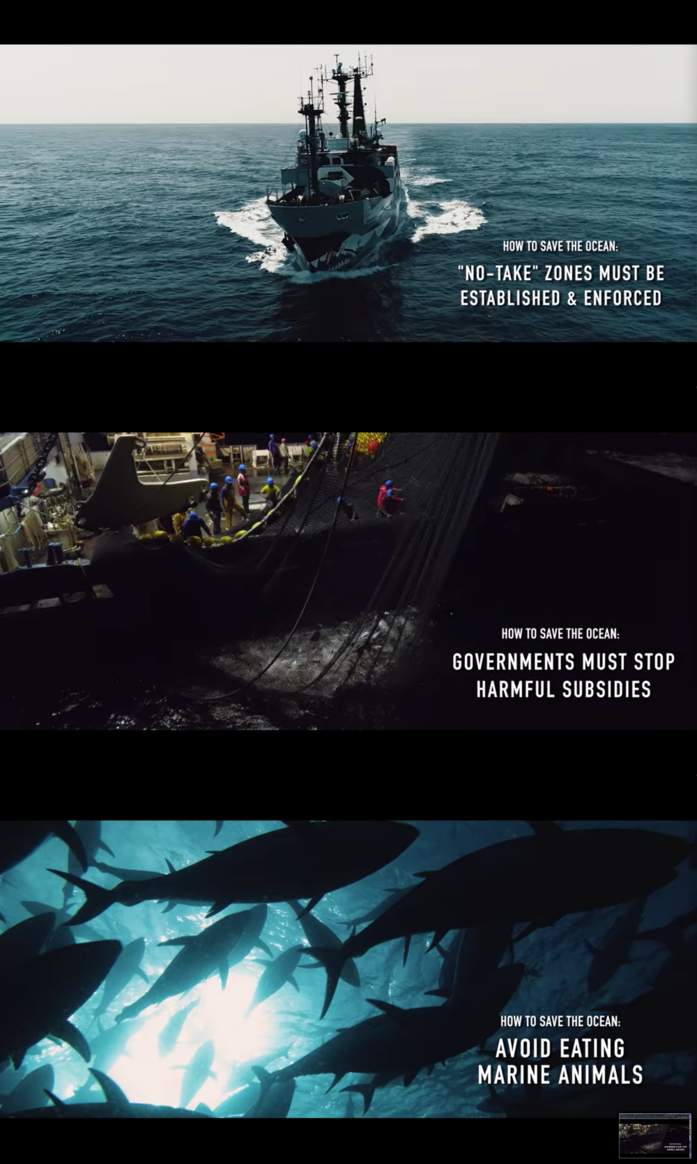 어업은 이제 너무 산업화 되어서 중단할 수 없는 상황. 그러니 핵심적인 내용은 피해가고 부수적인 빨대와 고래사냥을 문제 삼을 수 밖에 없는 아이러니한 상황이라는 주장.