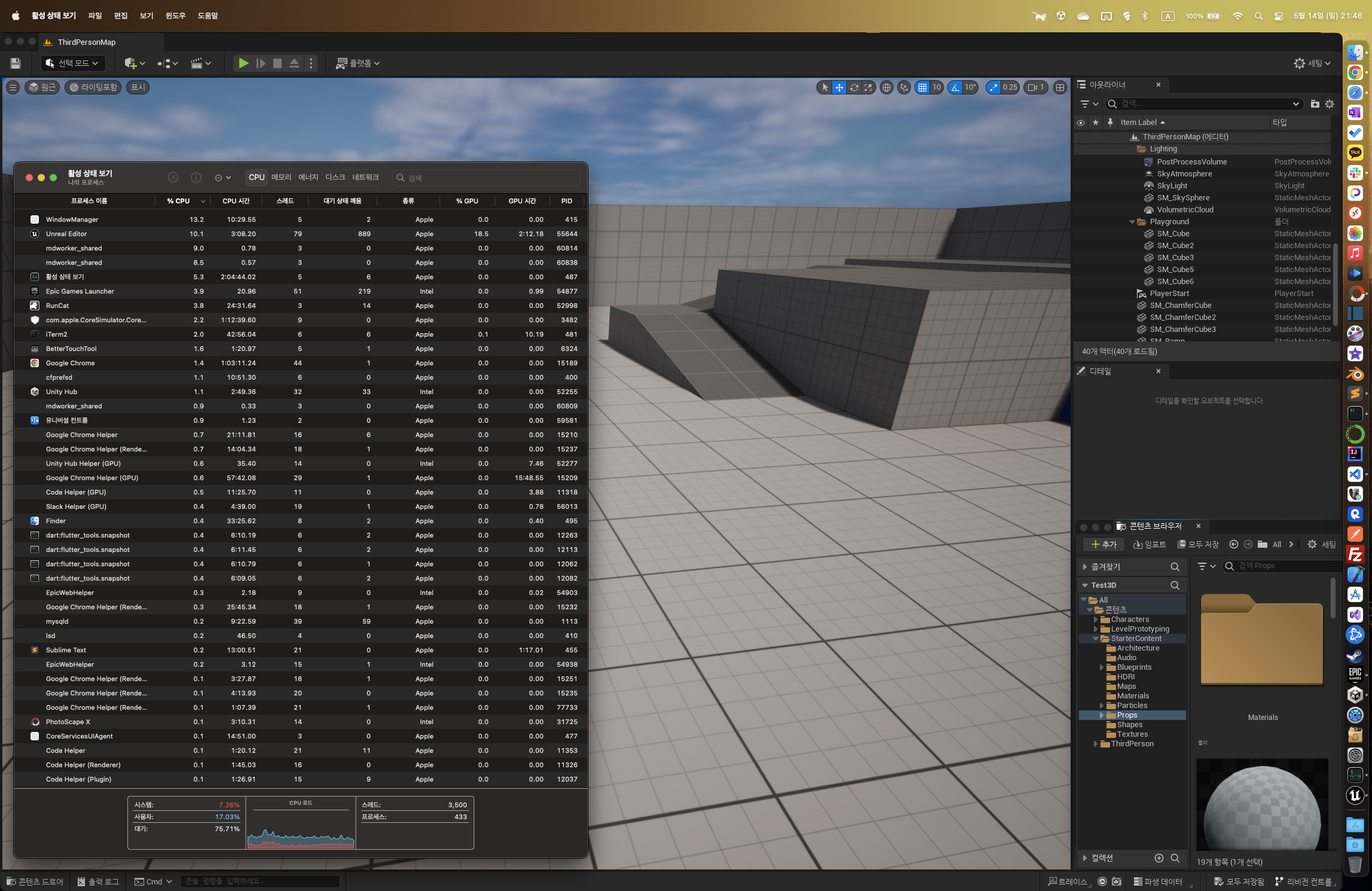M1 Pro 정도면 혹시나 언리얼이 잘 돌아가지 않을까 기대를 했지만 역시나 엄청 버벅입니다