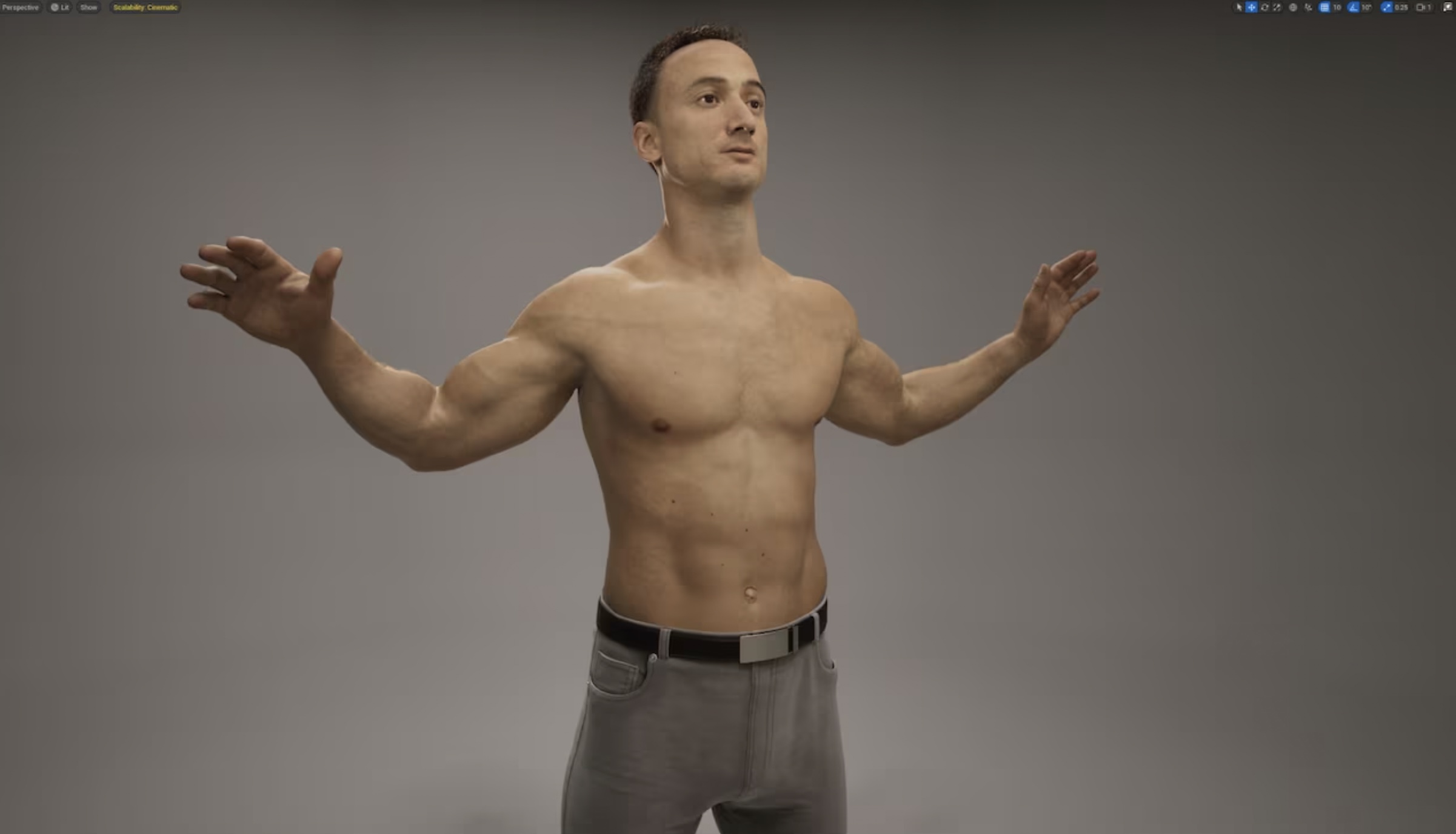 언리얼 엔진의 머신 러닝 기술을 사용하여 피부 아래에서 부풀어 오르고 움직이는 근육과 옷에 생기는 주름까지 표현해내는 전체 근육과 살, 클로스 시뮬레이션을 기반한 디포메이션으로 고퀄리티 리얼타임 캐릭터를 제작할 수 있게 됨