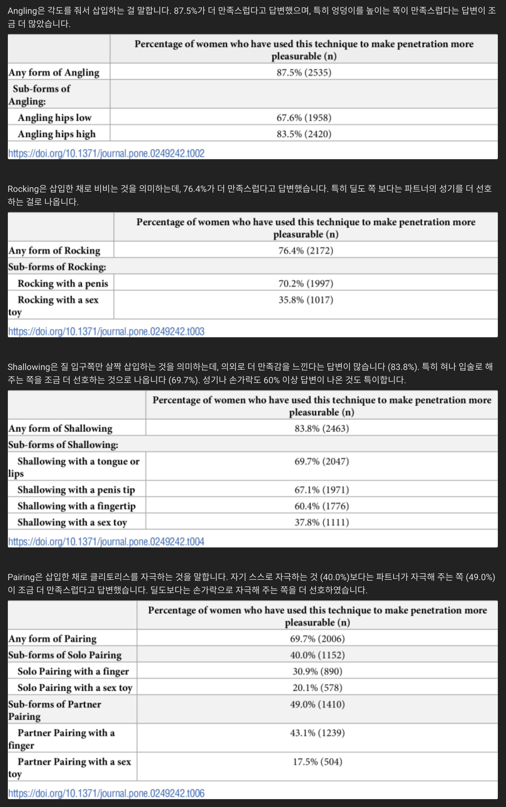 어떤 테크닉이 더 만족감을 주는지에 대한 미국 여성 설문조사 논문 : 클리앙