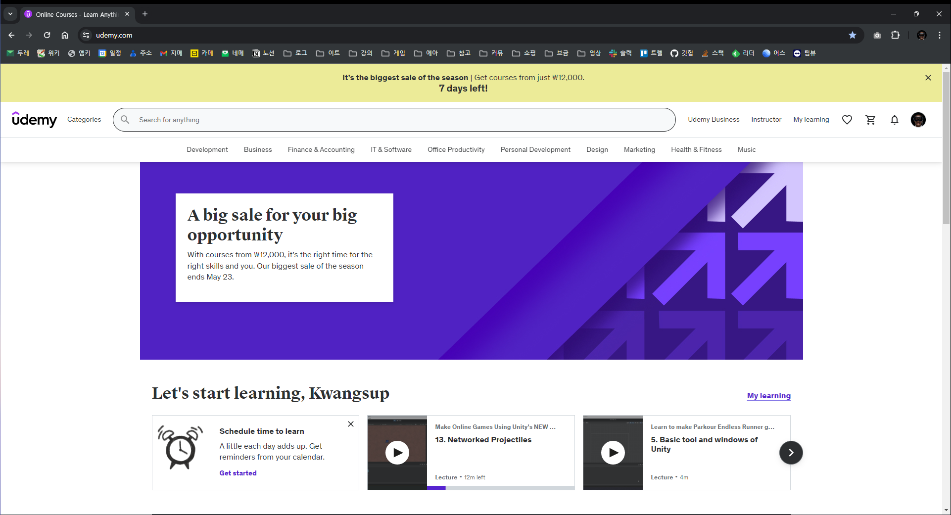 시도 때도 없이 할인행사 진행 - 15,000원 일때 구매하면 평생 소장