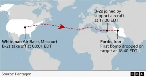 놀랍게도 미국에서 이륙하여 수차례의 공중급유를 받아가며 왕복 37시간 비행하여, 이란 폭격 후 미국으로 복귀 했다고 하는데 이란은 폭격기가 날아오는지도 몰랐다고 합니다.