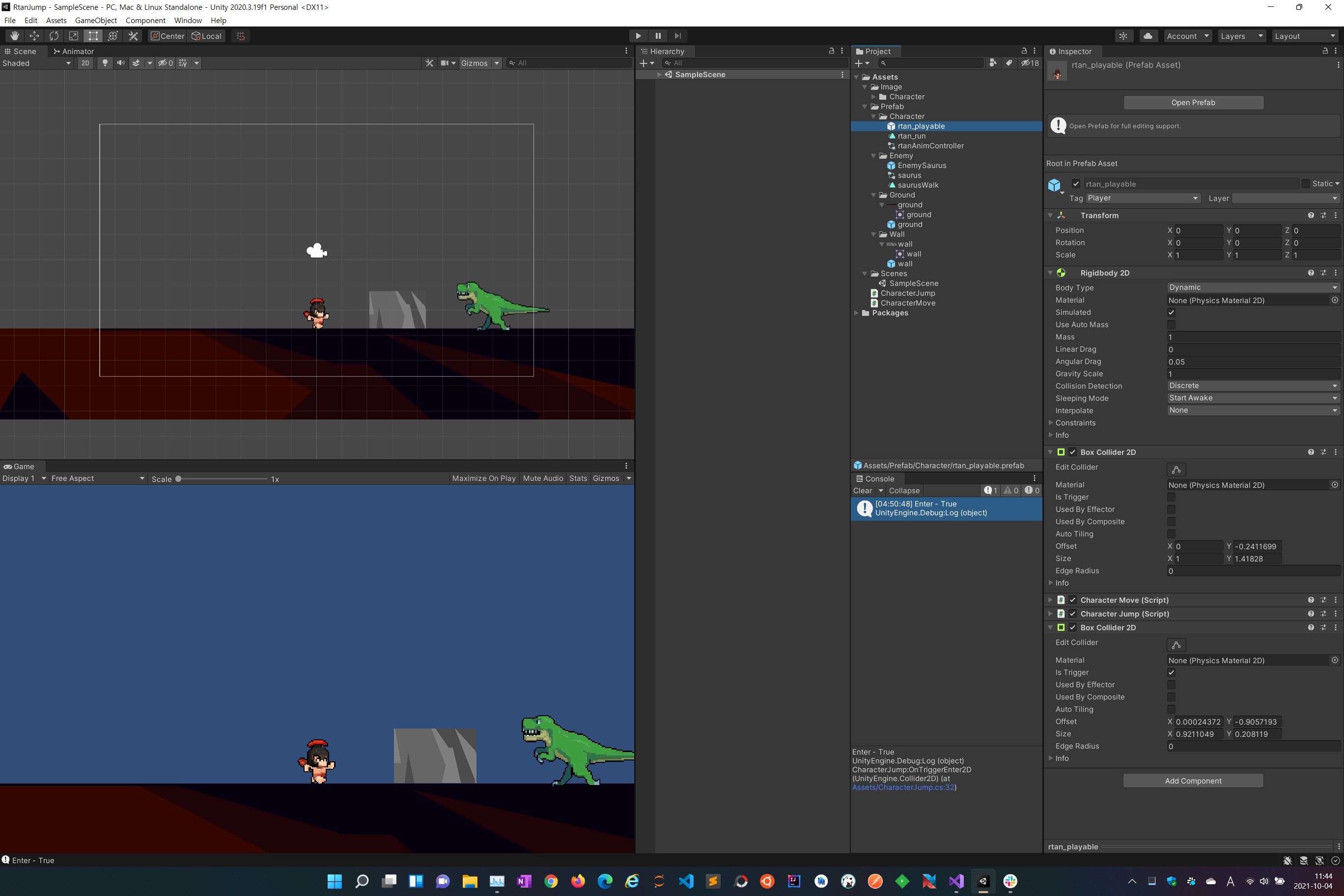 유니티 사용해서 캐릭터 올려 움직이고, 배경 넣고, 바닥 및 벽도 만들고,