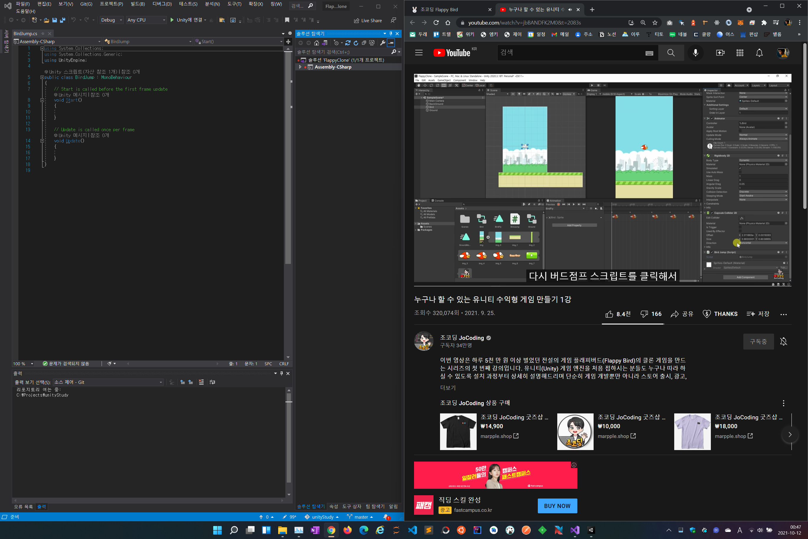 물론, 유니티도 2D 게임을 만드니 쉬운 것이지 3D 게임 만들려면 이것 보다는 훨씬 복잡하고 어려울 것 같습니다.