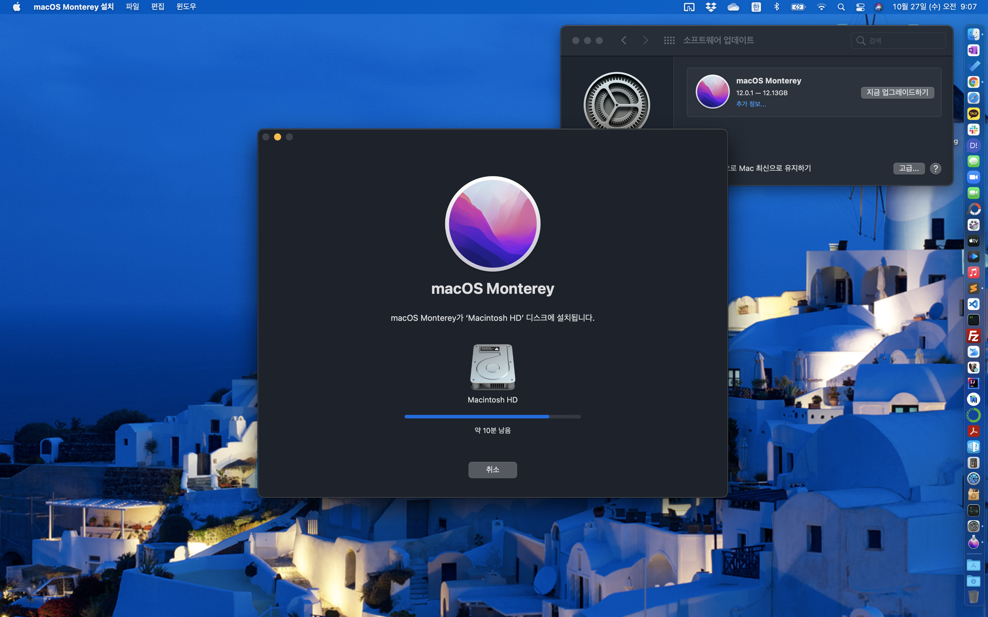 아침에 일어나 보니 다운로드 다 받아졌길래 설치 시작 했습니다. 58분이나 걸린다네요.