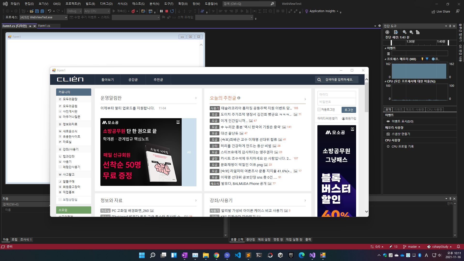 UI가 더 좋아졌다고 해서 2019 언인스톨 하고 설치를 해봤어요. 음 UI가 뭐가 좋아졌다는 것인지, 겉모습은 2019와 달라진 것을 찾을 수가 없었습니다. 아무튼, 통합개발환경 관련해서는 역시나 마이크로소프트가 갑. 이클립스, 인텔리J, 안드로이드 스튜디오, Xcode 어떤 것을 사용해봐도 비주얼 스튜디오를 당해낼 개발툴은 없지요.