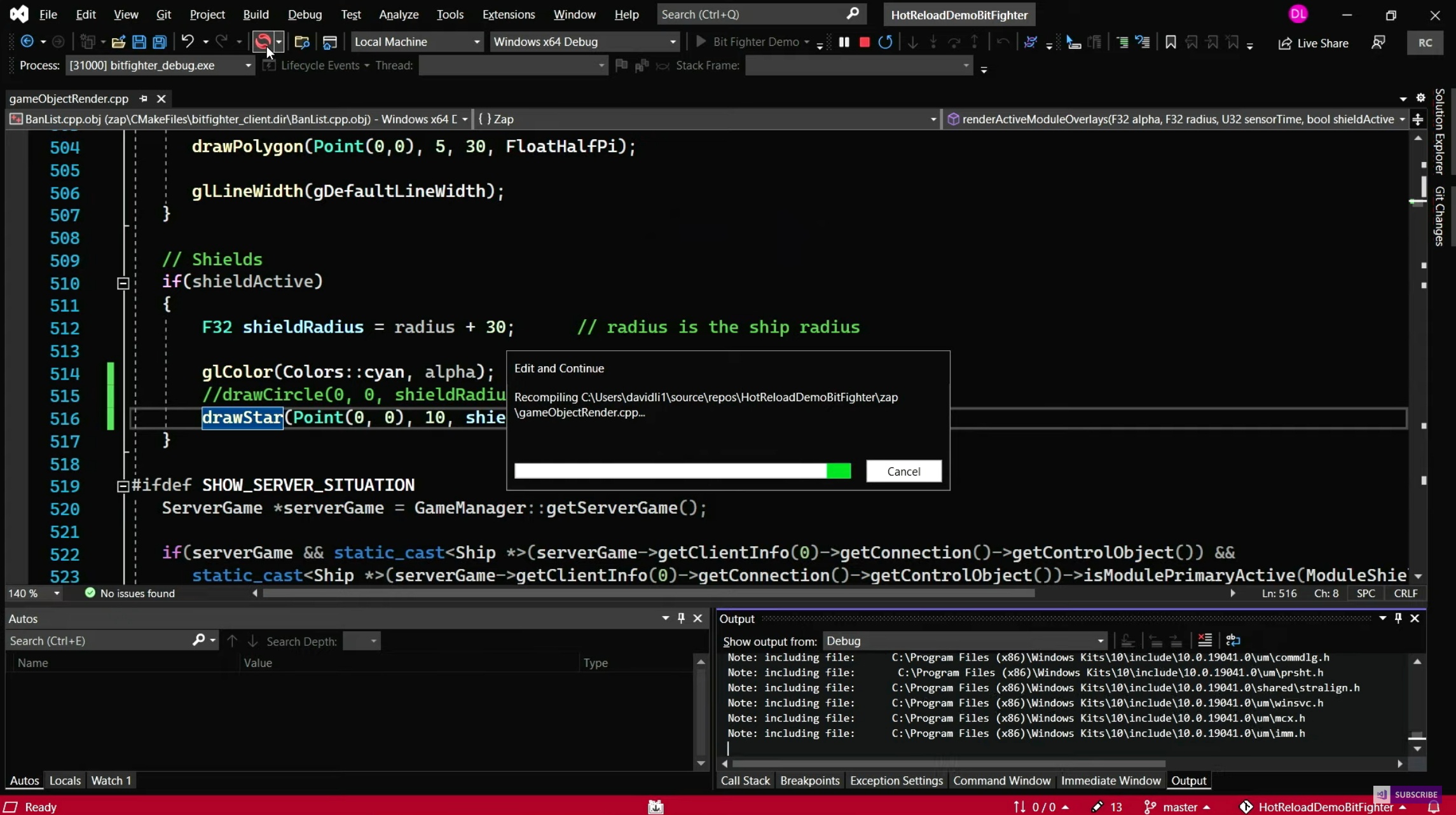 오~~ 핫 리로딩 기능 완전 멋집니다. C++ 뿐만 아니라 .NET에서도 사용 가능합니다. 소스파일 저장하면 자동으로 핫리로드 되도록 설정할 수도 있네요. 오래전부터 지원되던 기능인데, 이번에 심혈을 기울여 성능을 개선한 것으로 보입니다.