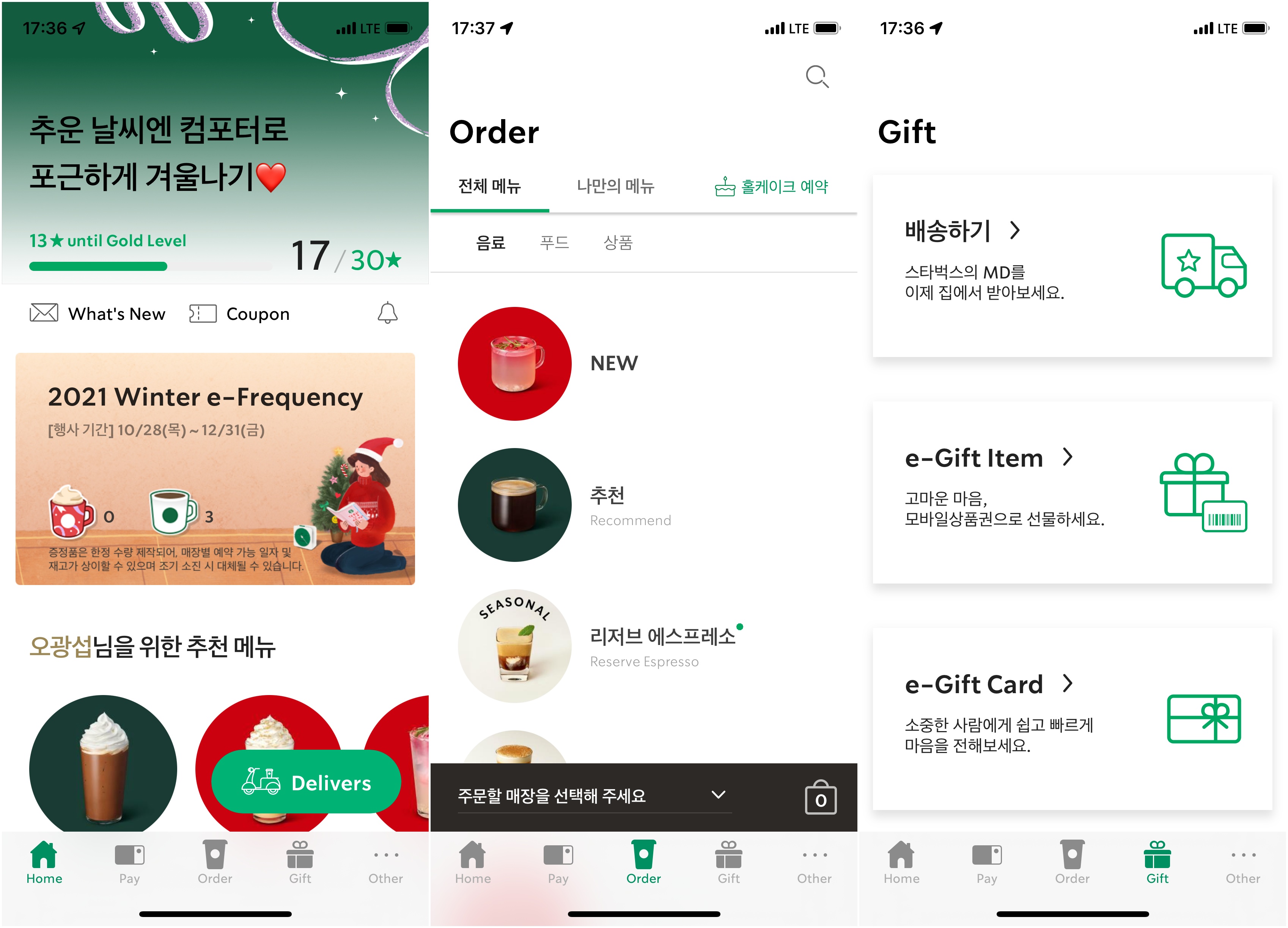 스타벅스 메뉴가 좋아서? 스타벅스 프리퀀시 때문에? 스타벅스 기프티콘이 생겨서 갈까요?