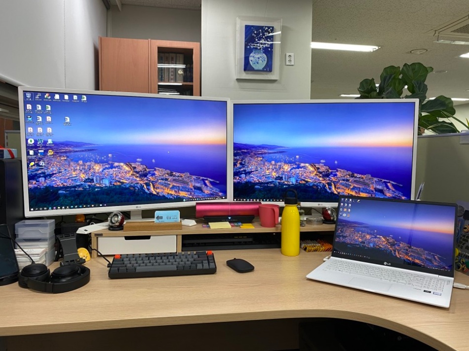 역시 업무에는 듀얼 모니터가 필수 입니다.