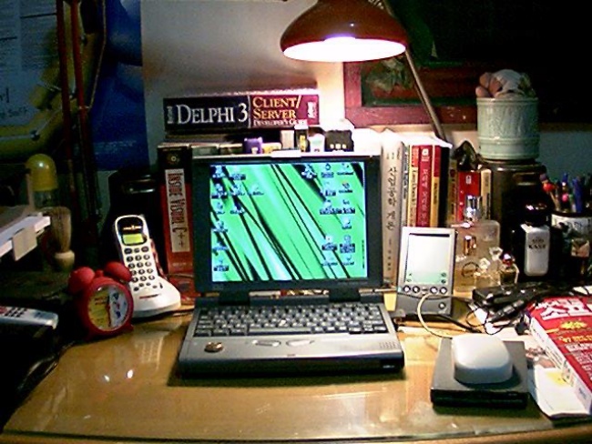 이때는 디지털 기기 말고 다른 것들도 책상 위에 많았네요.