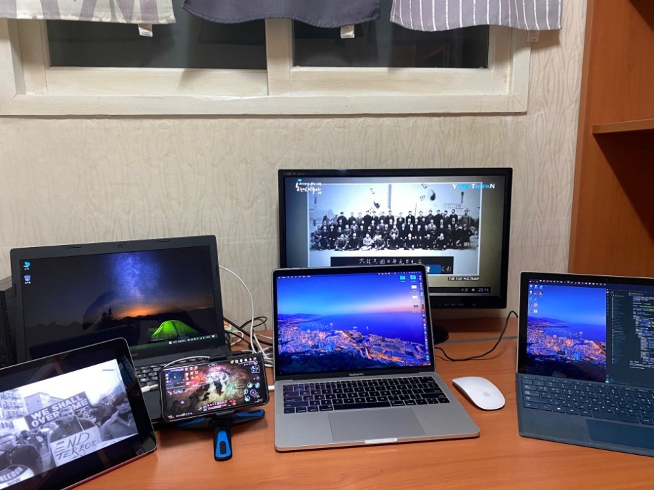 숙소에서도 놀려면 장비 세팅이 필수입니다.